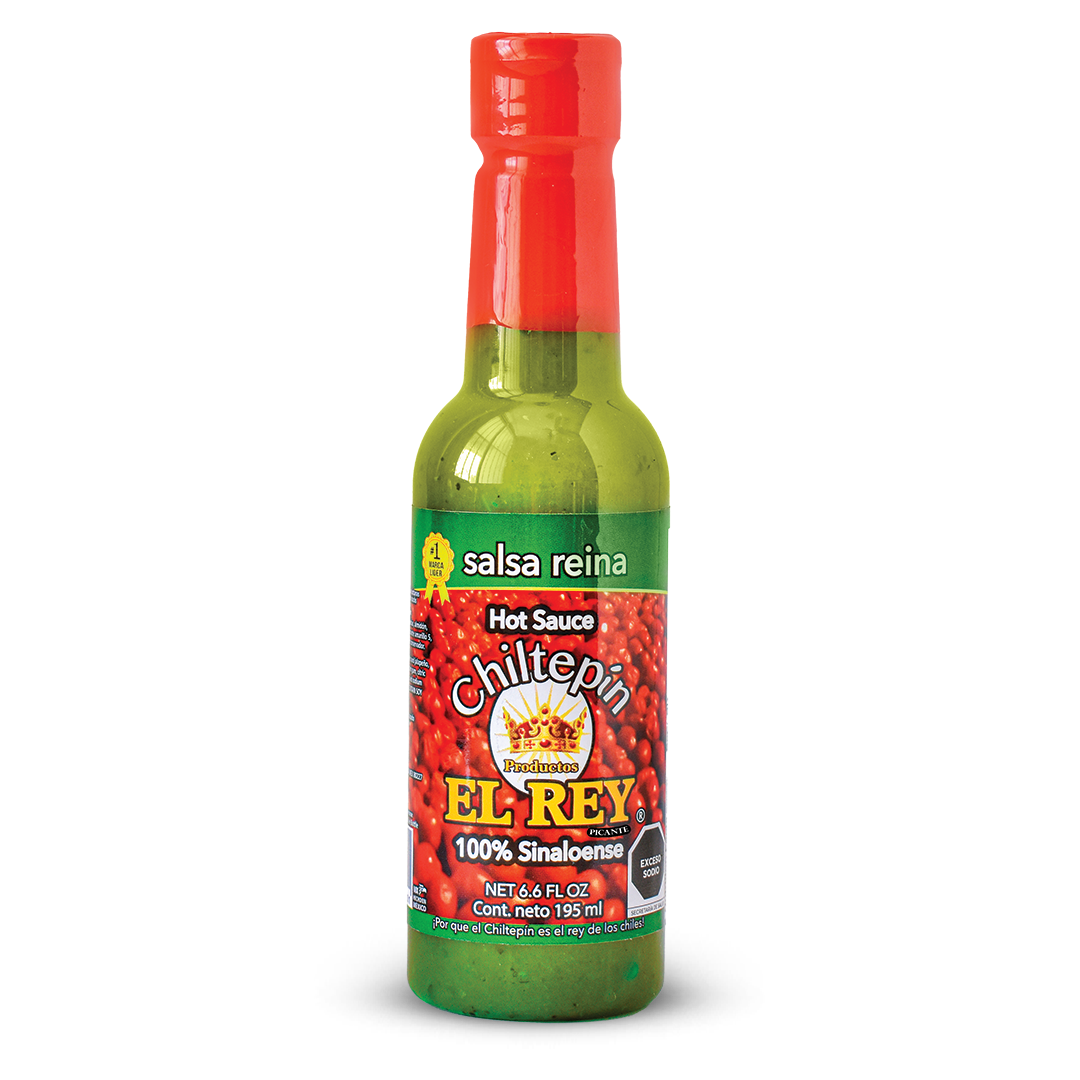 La salsa Reina reen hot sauce made from chiltepin chili and jalapeno is a bright, flavorful sauce with a good balance of heat and acidity.